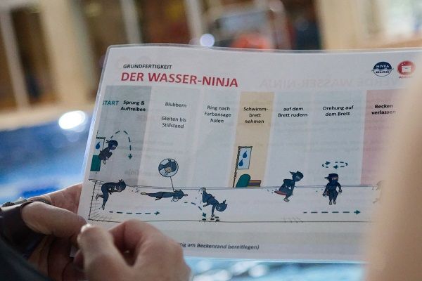 Unter diesem Motto führte die DLRG Lohmar e.V. im Rahmen ihrer Kooperation mit der Gesamtschule Neunkirchen am 24.03. einen Tag im Wasser für alle Schüler*innen der 5.-6. Klassen durch. Nach einem kurzen Sichtungsschwimmen und Einordnung der Fähigkeiten in verschiedene Gruppen konnte, dank der erfahrenen Trainer eine differenzierte Schwimmausbildung für alle Kinder durchgeführt werden. Am Ende des Tages, wechselten 17x Bronze, 3x Silber und 14x Seepferdchen zu einem stolzen Besitzer. Für alle Kinder, die zwar noch nicht schwimmen konnten, oder denen die zweite Schwimmart als Voraussetzung für das Bronzeabzeichen fehlte, gab es 17x das Ninja Abzeichen. Hierzu mussten alle Teileinheiten für den Abschluss der Wasserbewältigung wie atmen, tauchen, auftreiben, springen, gleiten, und fortbewegen bewältigt werden. Somit steht dem Erlernen des Schwimmens nichts mehr im Wege.